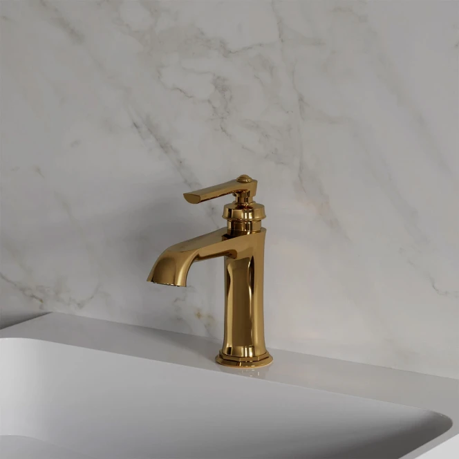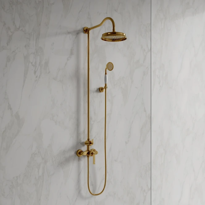 Omnires Fritstående Badekararmatur med Brusesæt Armance Guld Mat