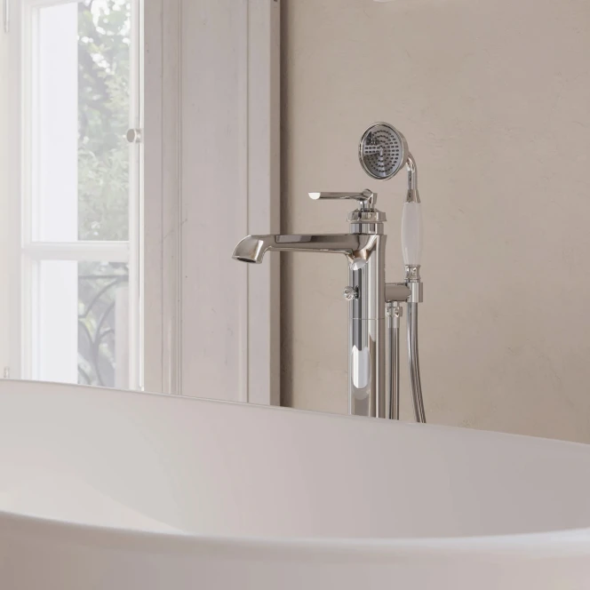 Omnires Fritstående Badekararmatur med Brusesæt Armance Krom Blank