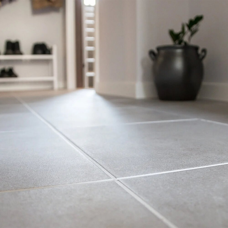 • Väljer du att lägga plattorna halvt förskjutet, tegelstensläggning, så skapar du en rörelse i golvet. Rekommenderat är att bryta ljusets riktning som du vill motarbeta korridorkänsla