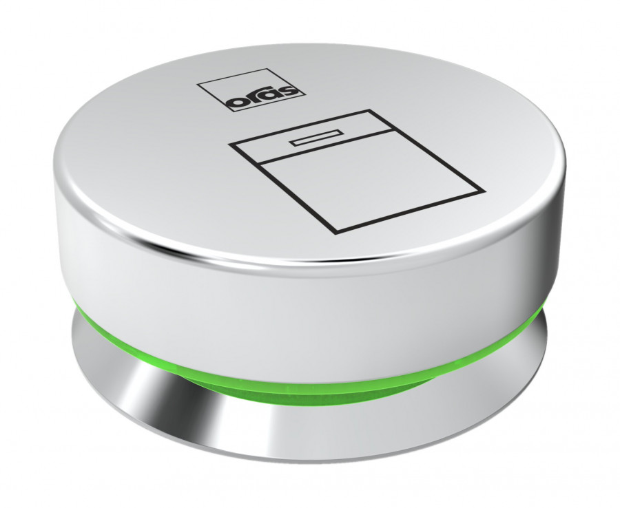 Blandartillverkaren Oras har löst detta på ett både smart, snyggt och installationssäkert sätt. Det är en trådlös “puck” som du trycker ner varje gång du ska aktivera diskmaskinen; fungerar givetvis även på tvättmaskinen. Trycket aktiverar den elektroniska ventilen och öppnar vattentillförseln till maskinen under en förprogrammerad tid. Pucken förvarar du på lämpligt ställe.