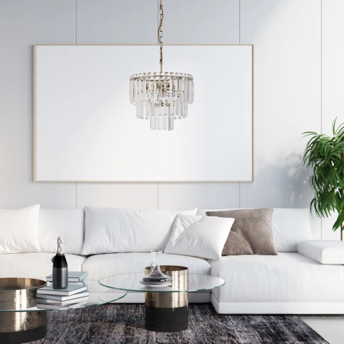 Hængelampe Brenza L Transparent Krystal, Antik Bronze Blank Ø 48 cm