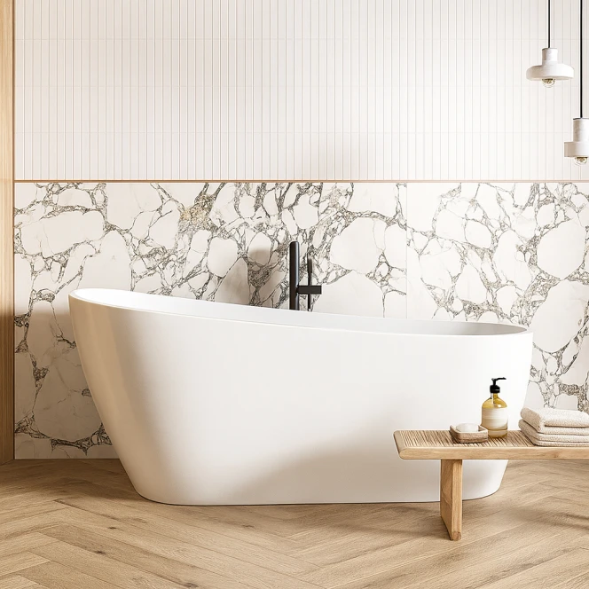 Badekar Castora Hvid Blank 180 cm med Krom Click-Clack Bundventil