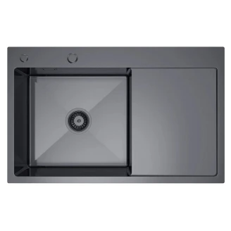 Rustfrit Stål Køkkenvask med Afløbsbakke Celion Krom Mat 78x49 cm med Vandlås Højre