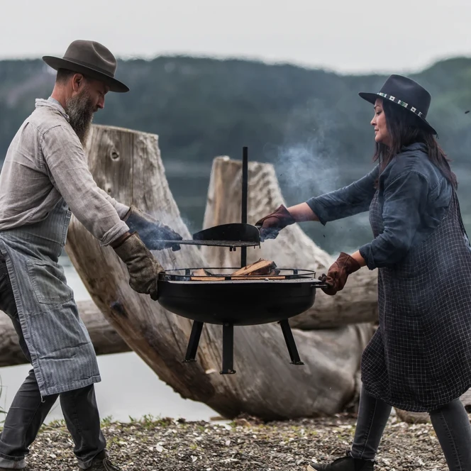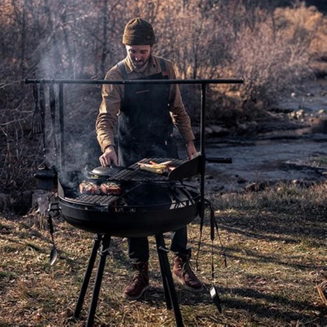 Materiale: Kolstål, Slätvävd 100% Bomullscanvas (Bärväska), 100% Fullnarvat Kohudsläder (Märke)