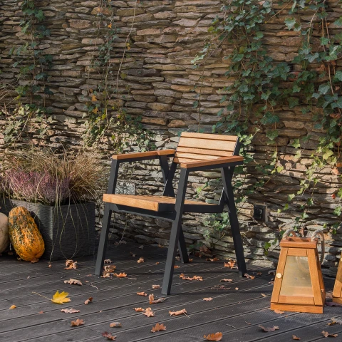 Udendørsstol med Armlæn Norex Sort, Træ