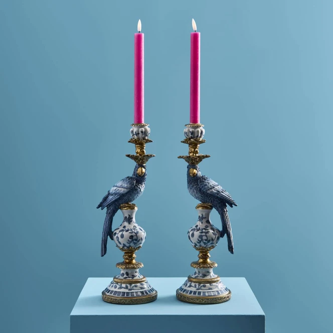 Werner Voss Sæt med Lysestager 2 stk. Parrot Blå, Guld