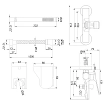 Badkarsblandare – Väggmonterad, med Handdusch och 5 Stråltyper
