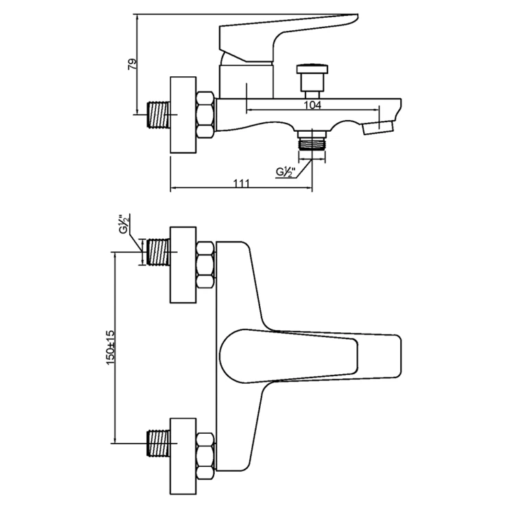 Badkarsblandare – Väggmonterad, Enkelgreppsdesign