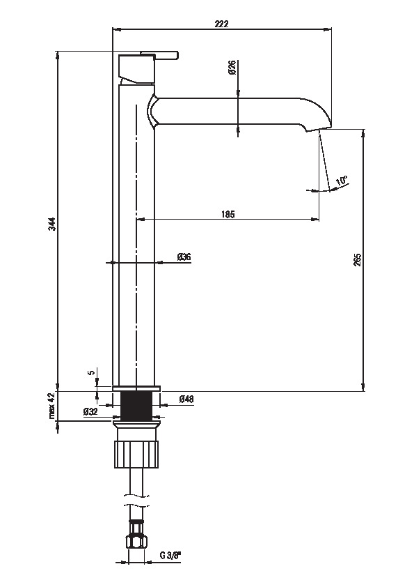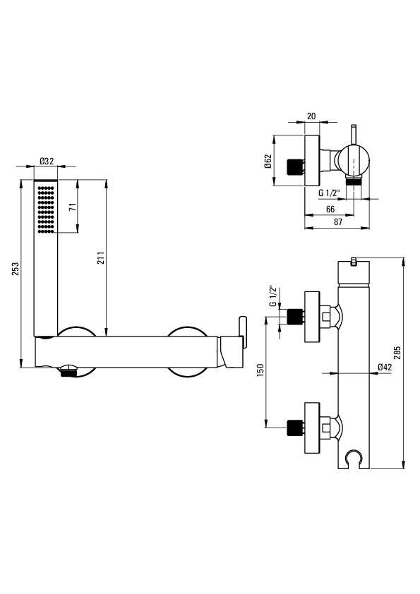 - Handdusch: Ø 32 mm, höjd: 253 mm