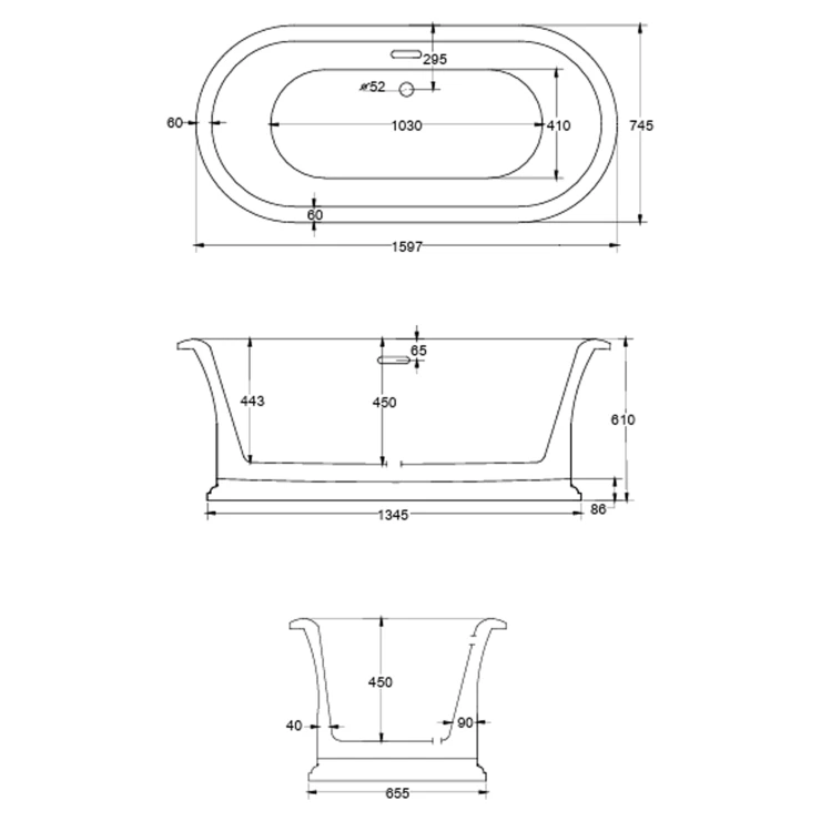 • - Fabriksmonterad bottenventil ingår i badkarets pris