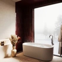 Badekar fremstillet af sanitetsakryl kendetegnes først og fremmest ved den perfekt glatte overflade, hvilket gør dem meget lette at holde rene. Akryl er et materiale med fremragende varmeisolerende egenskaber, hvilket gør, at produktets overflade længe holder vandets temperatur. Sikkerheden garanteres af materialets skridsikre og antibakterielle egenskaber. Da akrylen er gennemfarvet, kan små ridser nemt poleres væk.