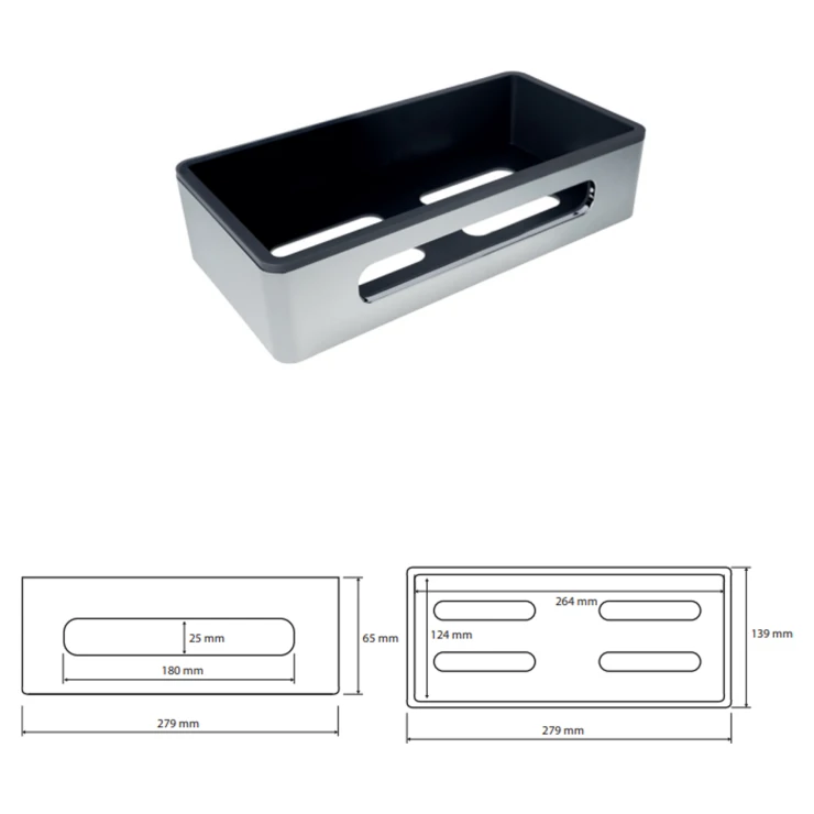 Serien passar perfekt vid duschhörnor, badkar och tvättställ. Ett särskilt praktiskt inslag är den hängande hyllan, som är flyttbar och enkel att ta bort – en flexibel lösning för ett modernt och organiserat badrum.