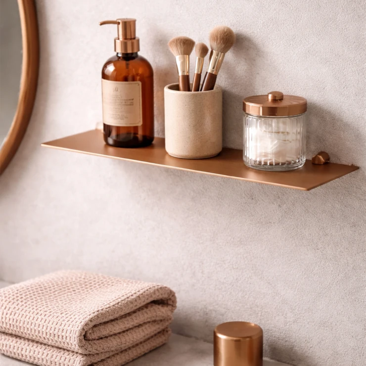 Reflet finns med PVD-behandlad yta i exklusiva finishar som matt champagneguld och matt koppar – vilket skapar en varm och lyxig känsla i badrummet. Kollektionen är ett perfekt val för dig som vill ha badrumstillbehör med tidlös design, premiumkvalitet och subtil elegans.