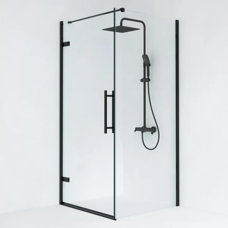 Badrumspaket Cool! Duschhörn 90x90 cm & Takduschset Grandiose Rektangulär med Termostat Svart Matt