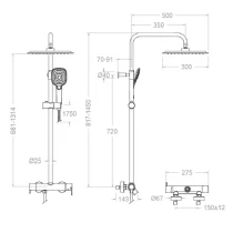 Takduschset Grandiose Svart Matt Rektangulär med Termostat: