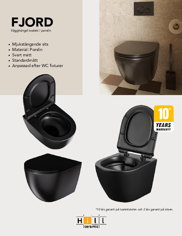 Fjord är en serie med hög kvalitetsstandard. Serien innehåller 2 olika storlekar: Badrumspaket Vit Blank med WC-fixtur cm, Toalett. Nästan alla variationer finns i blank, matt yta. Det finns 2 huvud färger i serie Fjord: