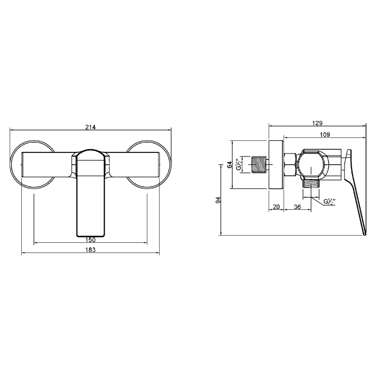 Elegant väggmonterad duschblandare med enkelgrepp för smidig temperatur- och flödeskontroll. Den är utrustad med en keramisk insats på 25 mm, vilket garanterar hög precision, hållbarhet och tyst drift. En stilren och funktionell lösning för moderna badrum.