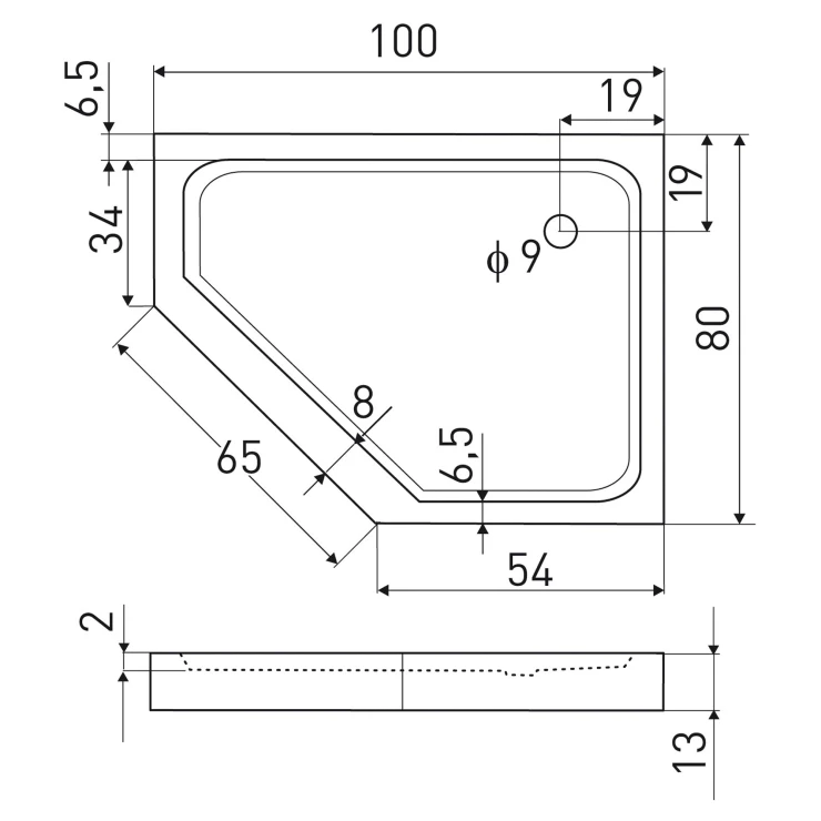 Brusebakke Dunara 100x80 cm Femkantet Hvid Blank Venstre
