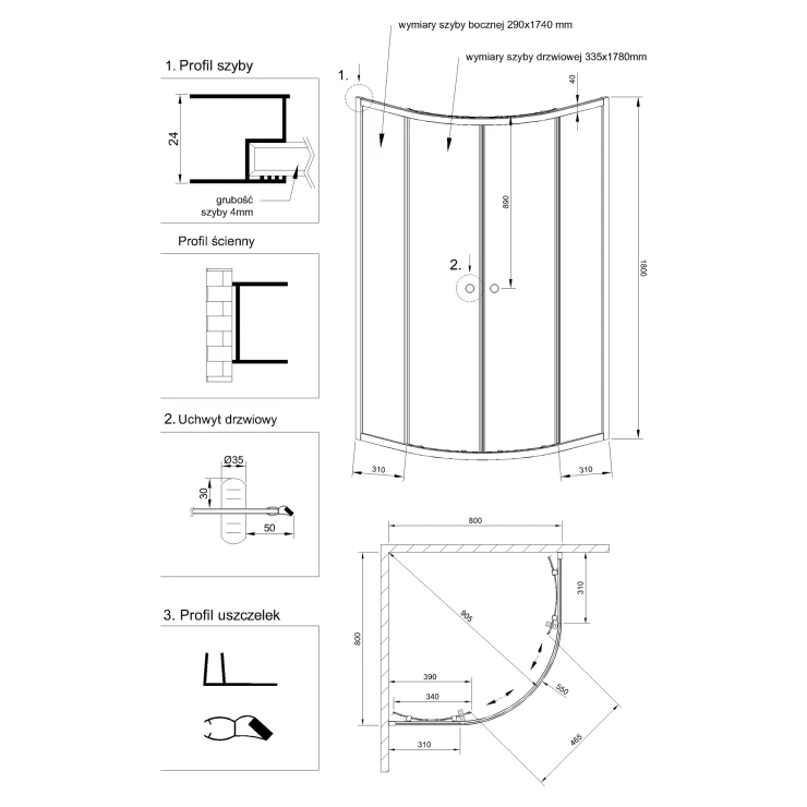 Halvrund Duschkabin – Kromprofiler, Grafitglas