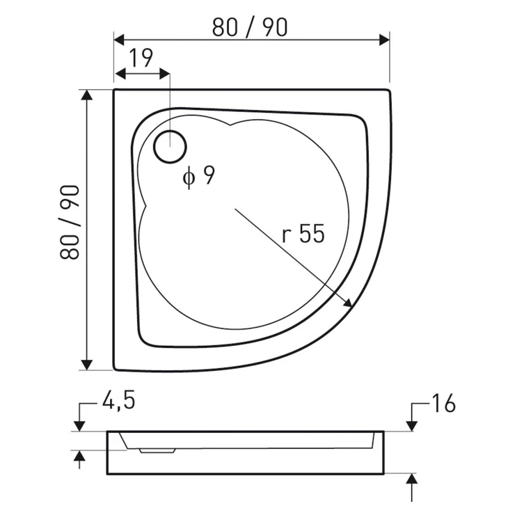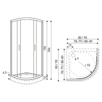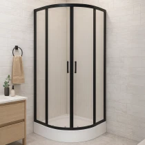 Brusehjørne med Brusebakke Sirocco 90x90 cm Rund Sort Mat