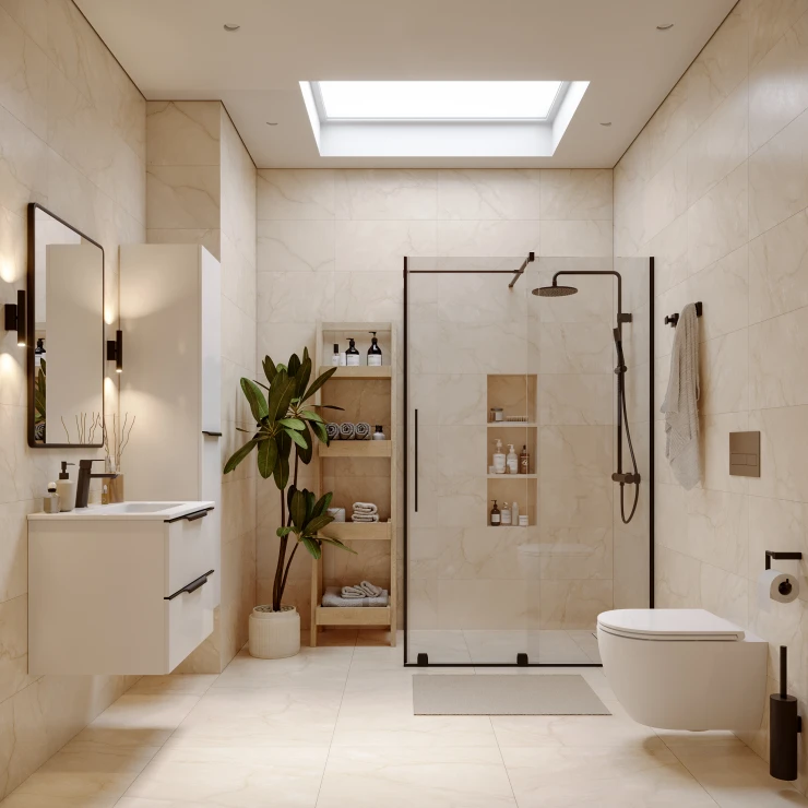 Kabinen kan installeres direkte på klinkergulvet uden behov for brusekar.