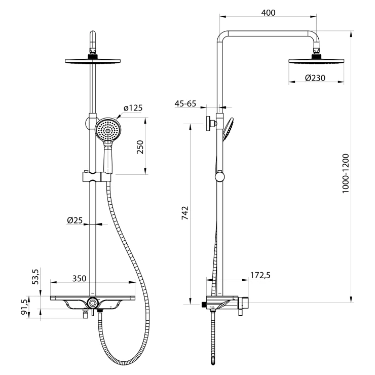 Stångens tvärsnittsdiameter: Ø 25 mm
