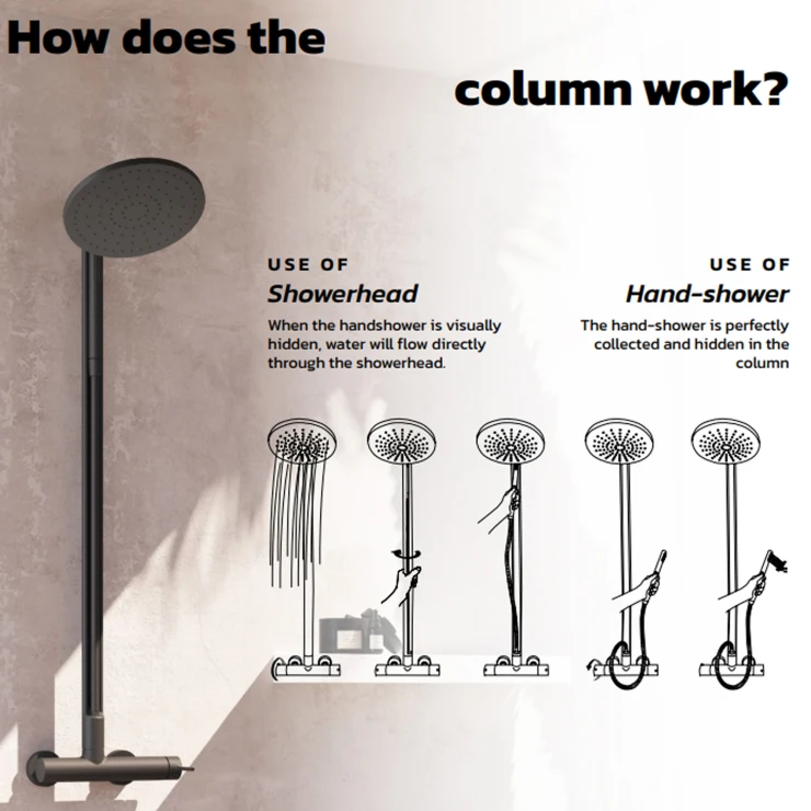 – Kolumn som gör det möjligt att dölja slang och handdusch vid användning i sprayläge, vilket förhindrar exponering för vatten och friktion