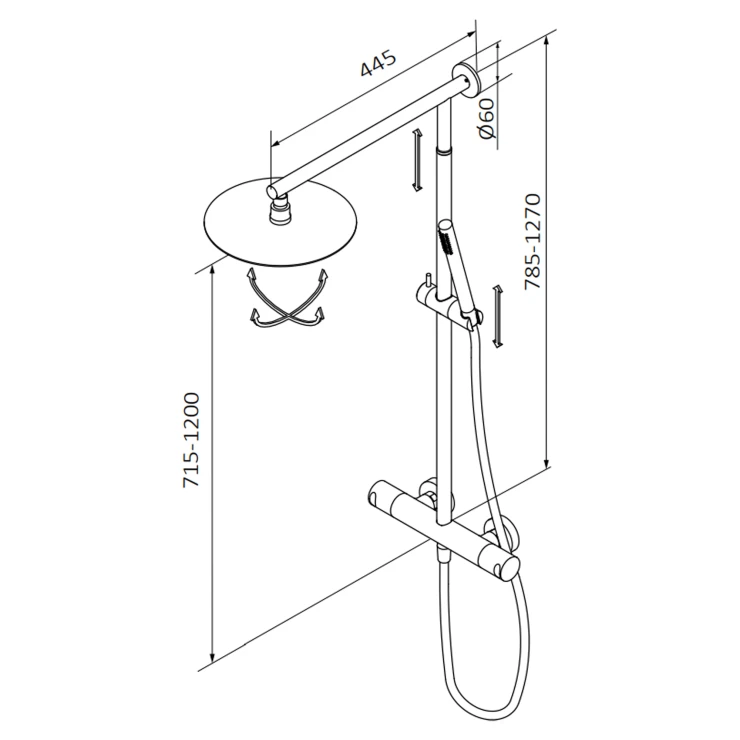 – Justerbar kolonnhöjd, maximerad till 785–1270 mm