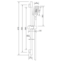 Praktiskt och elegant duschset med duschstång (höjd 68 cm) och handdusch med tre funktioner – normal, mjuk och blandad stråle.