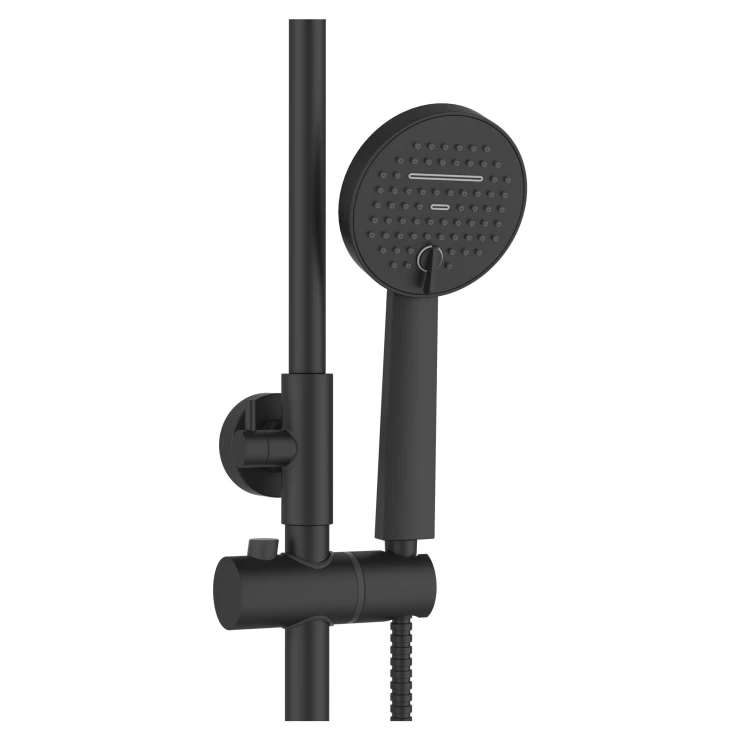 Handduschen har tre funktioner – normal, blandad och mjuk – samt anti-calc-system som gör den enkel att rengöra. Det justerbara glidfästet ger bekväm användning, medan den manuella omkopplaren integrerad i blandaren låter dig enkelt växla mellan tak- och handdusch.