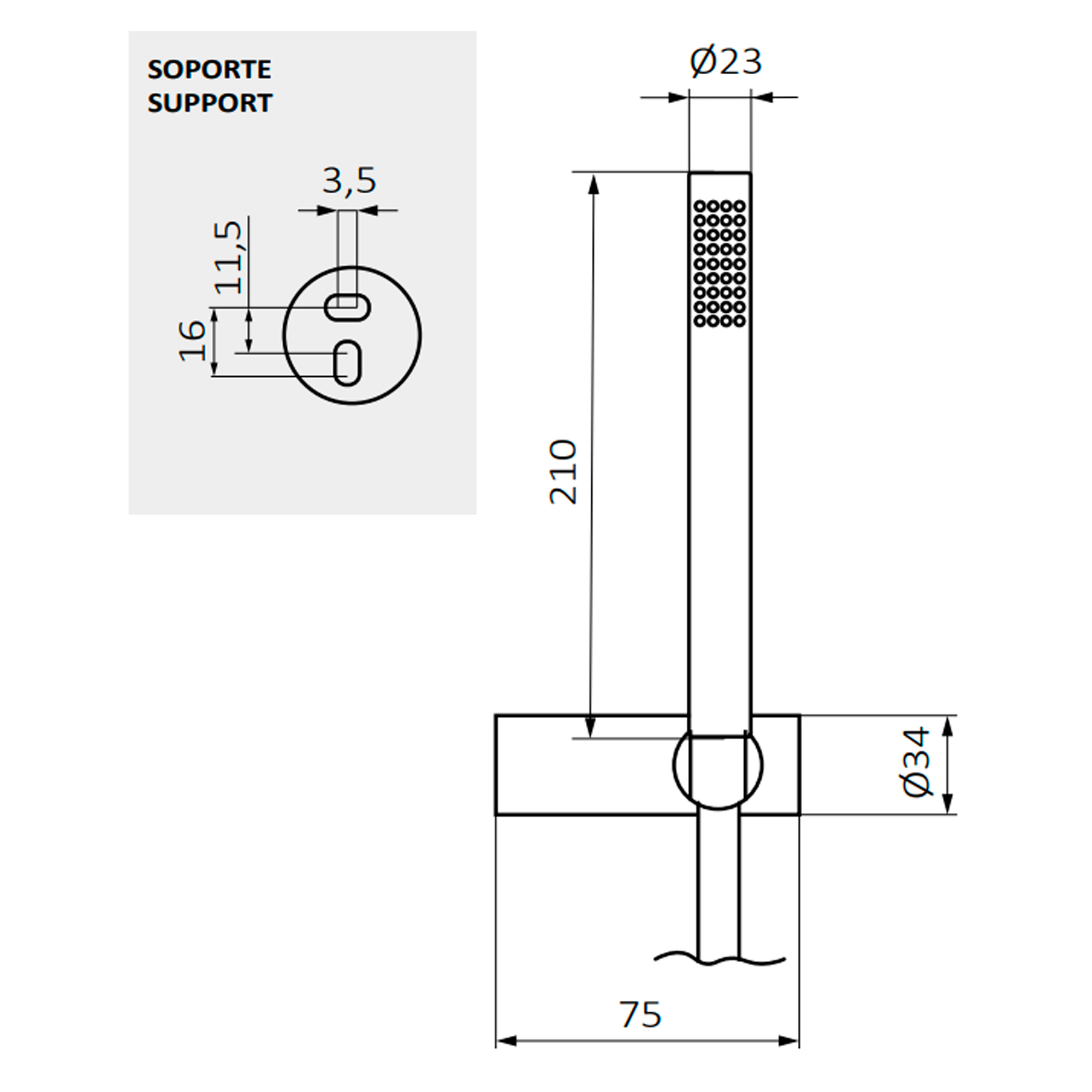 Handdusch i rörform, 1 funktion. Antikalk – Mässing