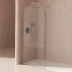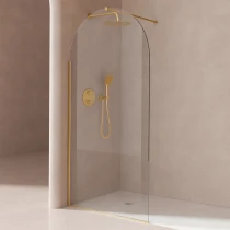 Med største finesse fornyer Amelise fast væg de klassiske linjer ved at antage en rundet form. Klart SECURIT-glas, 8 mm tykt, med antikalkbehandling. Fås i størrelserne: 100 og 120 cm
