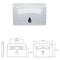 Praktisk och hygienisk dispenser för förvaring och enkel åtkomst till hygienpåsar. Passar perfekt för offentliga toaletter, kontor, hotell och andra gemensamma utrymmen. Dispensrarna bidrar till en renare miljö och underlättar korrekt avfallshantering. Enkel att montera på väggen och smidig att fylla på vid behov.
