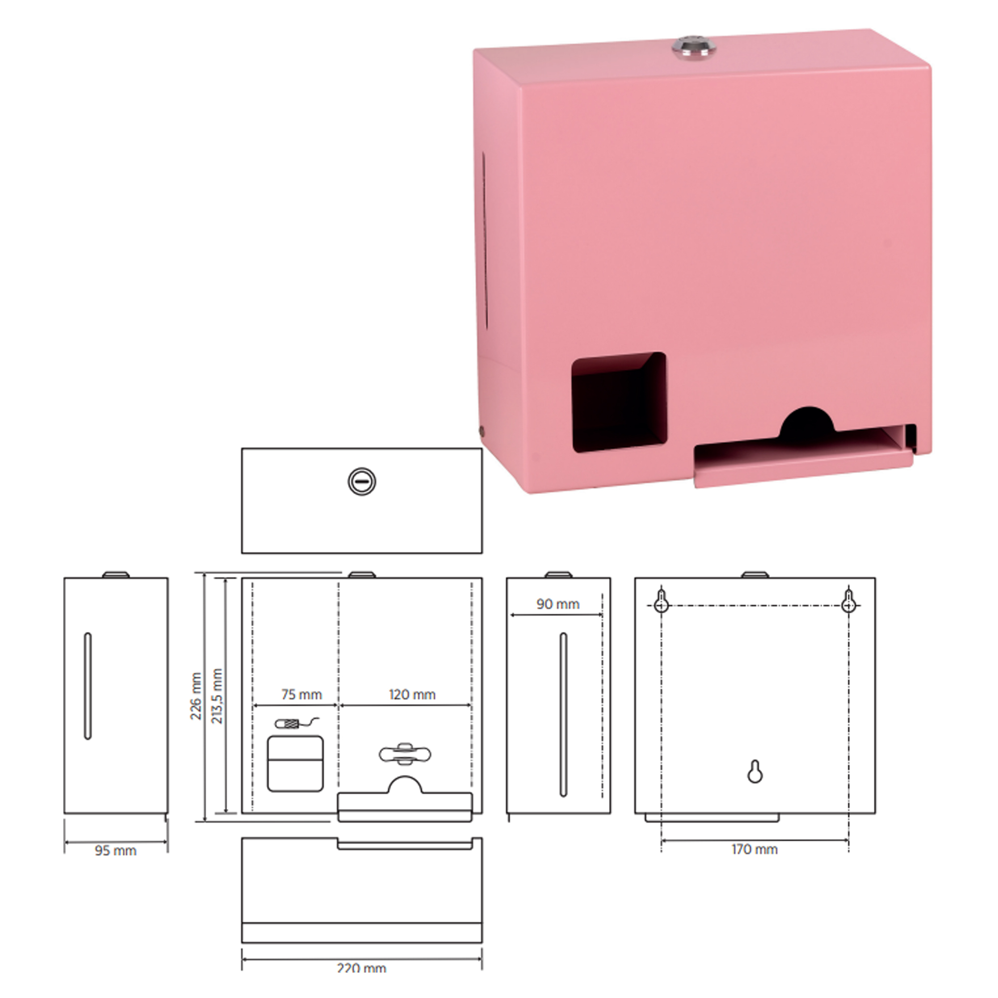 Toalettartikelfatet i rostfritt stål gör det möjligt att fritt tillhandahålla tamponger och bindor till alla som behöver dem. En idealisk lösning för skolor, företag och offentliga miljöer. Varje fack rymmer cirka 25–30 bindor och 100 tamponger i standardstorlekar.