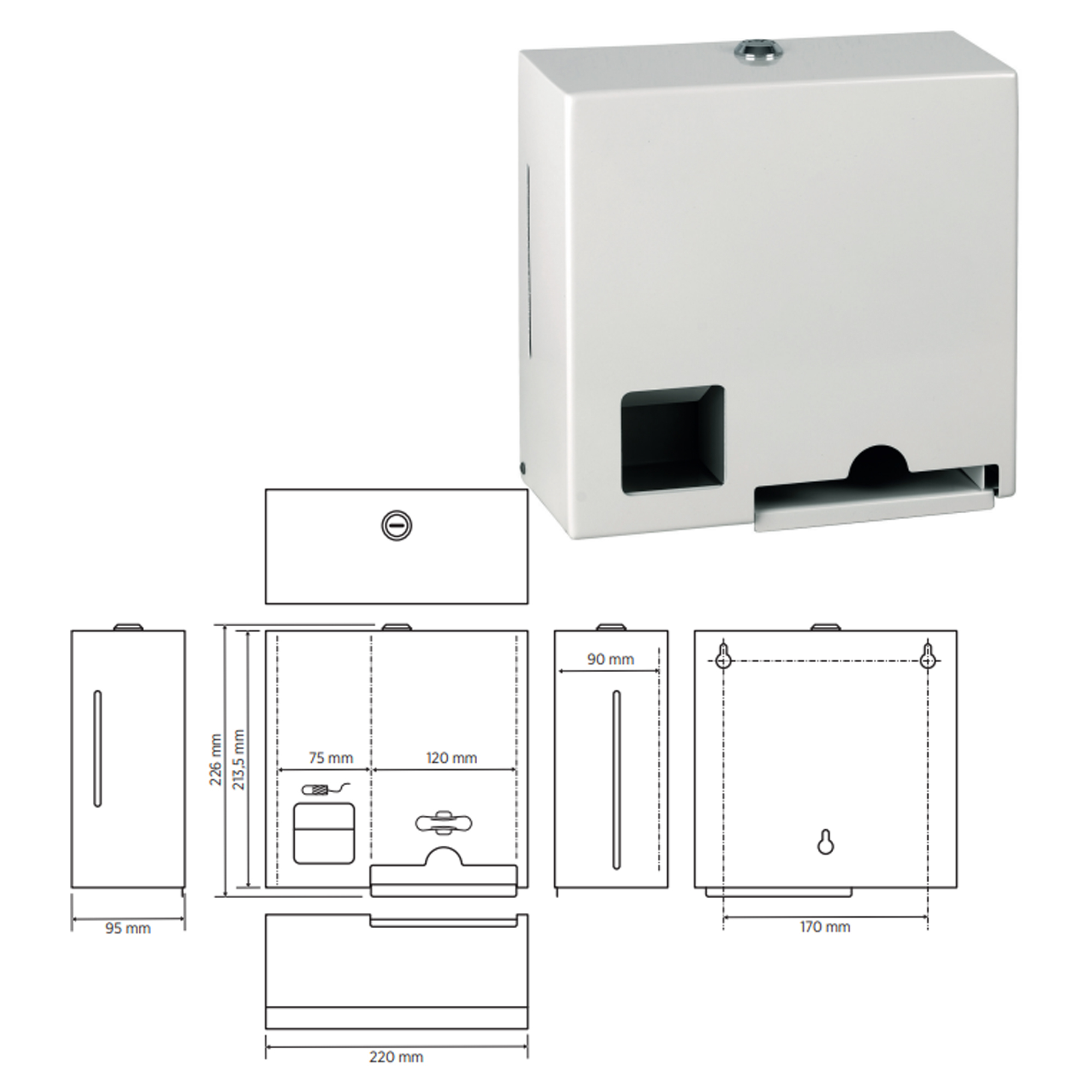 Toalettartikelfatet i rostfritt stål gör det möjligt att fritt tillhandahålla tamponger och bindor till alla som behöver dem. En idealisk lösning för skolor, företag och offentliga miljöer. Varje fack rymmer cirka 25–30 bindor och 100 tamponger i standardstorlekar.