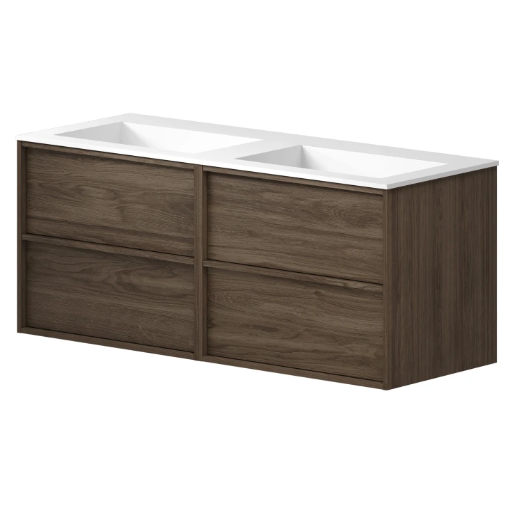 Ekskär – en unik kombination af moderne design og ægte egetræsfinerstrukturer. Det skandinaviske minimalistiske design med ensartede former og varme trætoner smelter harmonisk ind i dit hjem og skaber en følelse af komfort og enkelhed. Denne alsidige kollektion passer perfekt til alle stilarter inden for badeværelsesindretning. Ved skabelsen af Ekskär-serien blev der lagt særlig vægt på innovation og funktionalitet for at imødekomme alles forventninger og behov.
