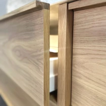 Nyd de integrerede ergonomiske greb af naturlig eg og den gode opbevaringsplads til dine ejendele i de rummelige skuffer i møbelelementet.