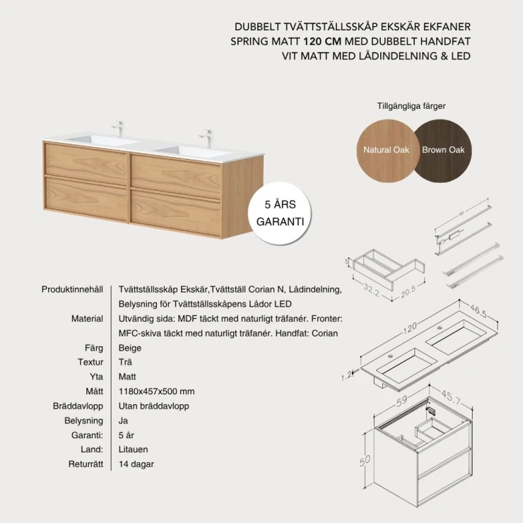 Ekskär – en unik kombination af moderne design og ægte egetræsfinerstrukturer. Det skandinaviske minimalistiske design med ensartede former og varme trætoner smelter harmonisk ind i dit hjem og skaber en følelse af komfort og enkelhed. Denne alsidige kollektion passer perfekt til alle typer badeværelsesindretning. Ved udviklingen af Ekskär-serien blev der lagt særlig vægt på innovation og funktionalitet for at imødekomme alles forventninger og behov.