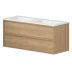 Nyd de integrerede ergonomiske greb i naturlig eg og den rummelige opbevaring til dine ting i skuffeelementets rummelige låger.