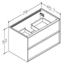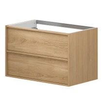 Njut av de integrerade ergonomiska handtagen av naturlig ek och gott om förvaring för dina saker i den rymliga handfatsenhetens lådor.