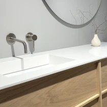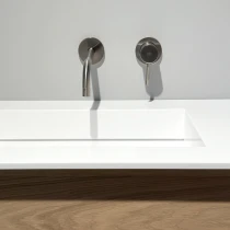 CORIAN är ett originalmaterial av högsta kvalitet med hållbarhet, estetik och lätt formbarhet. Corian uppfyller höga hygienkrav som krävs i badrummet: icke-absorberande, lätt att rengöra fläckar och enkel daglig underhåll.