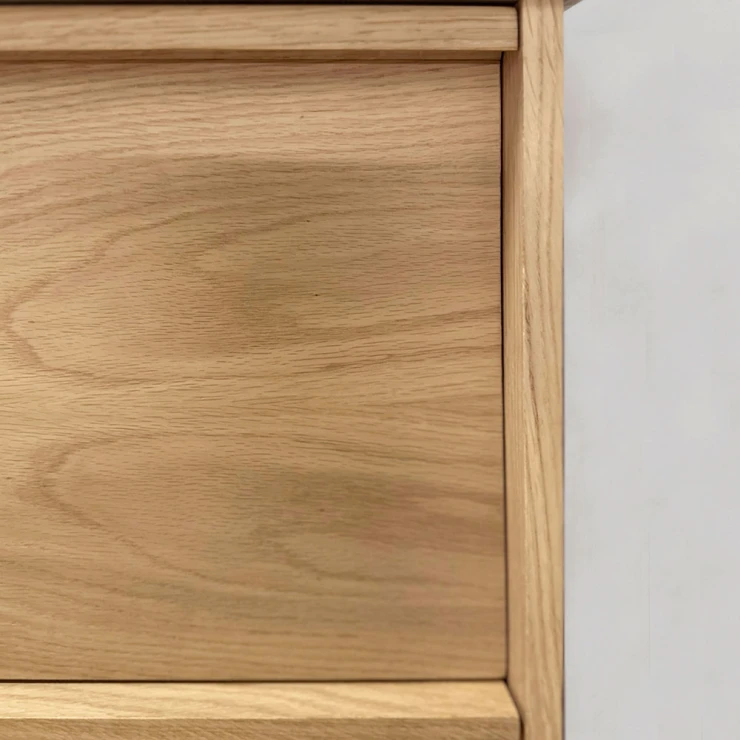 Denna möbelserie är tillverkad av ekfaner och täckt med fukttålig lack. Skåpen har integrerade ergonomiska, slitstarka handtag i massiv ek. Små skador som kan uppstå vid användning är lätt att renovera. Du kan välja mellan naturlig eller brun ekfaner.
