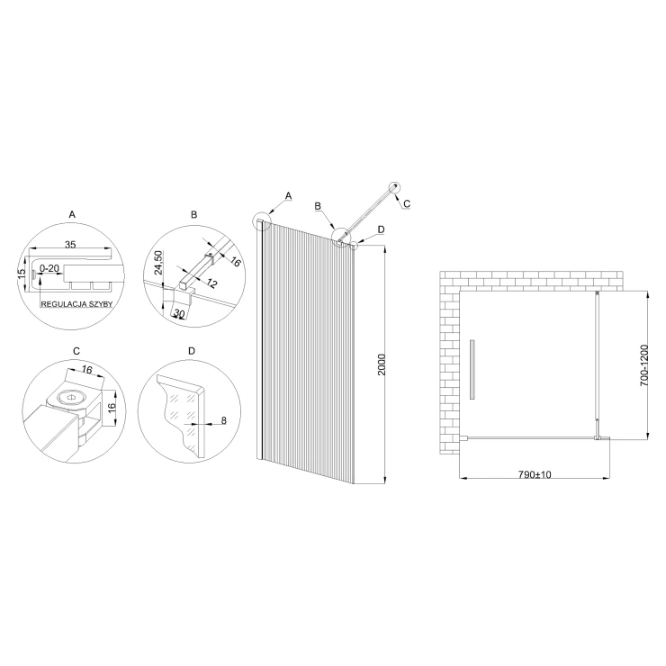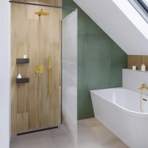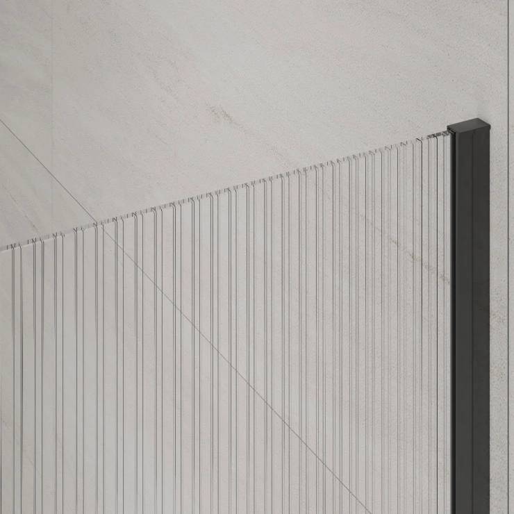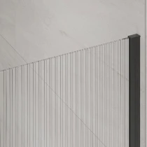 Modern walk-in duschvägg med räfflat härdat glas (8 mm) och svarta aluminiumprofiler. Den eleganta designen kombinerar stil och funktion – perfekt för både små och stora badrum. Den shiny glass-coating-behandlade ytan gör glaset vattenavvisande och lätt att rengöra, vilket minskar kalk- och smutsavlagringar. Ett exklusivt val för dig som vill skapa en öppen, minimalistisk och trendig duschlösning.
