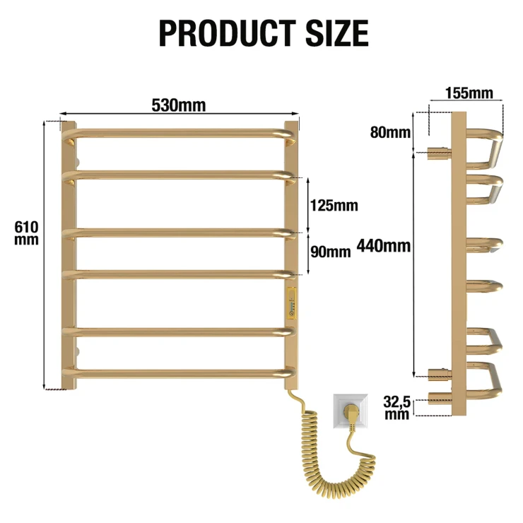 Denne elektriske håndklædetørrer er designet til høj komfort og nem anvendelse. Den kan tilsluttes hvor som helst, der er adgang til strøm. Takket være et tørt internt varmesystem kræves ingen væsker – det er bare at tilslutte og begynde at bruge. Håndklædetørreren varmes hurtigt op og når sin maksimale temperatur inden for få minutter.