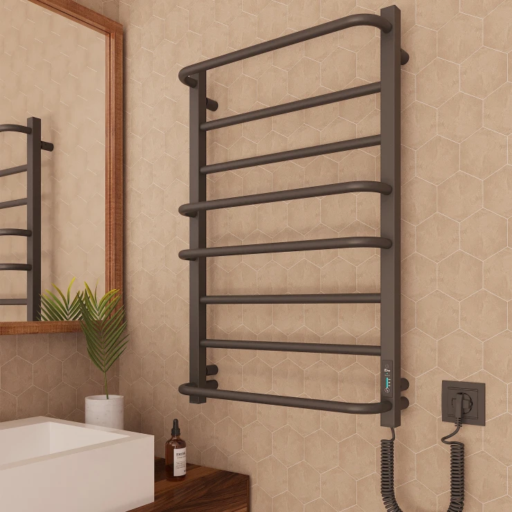 I tråd med globale trends inden for badeværelsesdesign præsenterer vi denne elektriske håndklædetørrer i mat sort udførelse. Et perfekt designvalg for kunder, der værdsætter industrielle farvetoner, minimalistisk æstetik og rene metalformer.