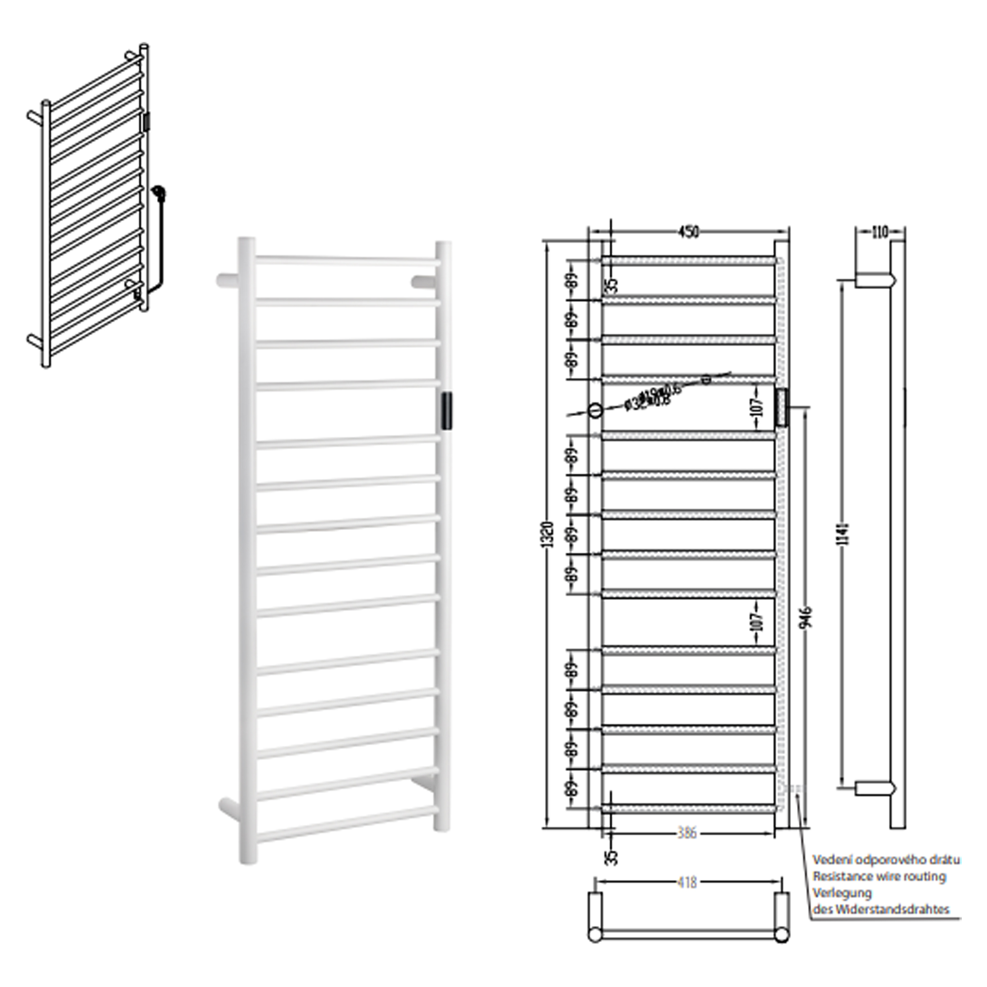 Anslutningstyp: handdukstorken är utrustad med anslutningskabel med stickkontakt för eluttag samt med reducering för fast anslutning till väggens elinstallation.