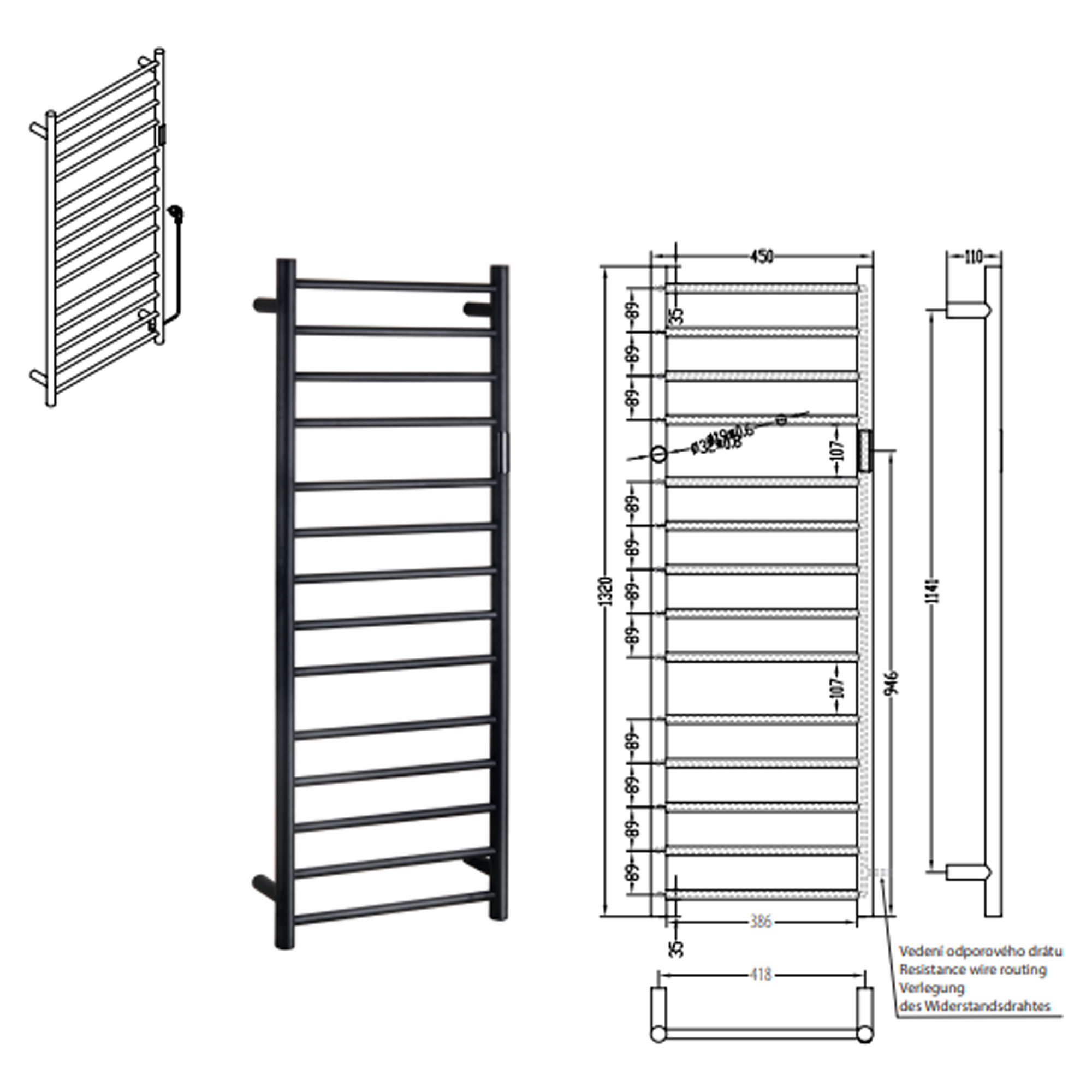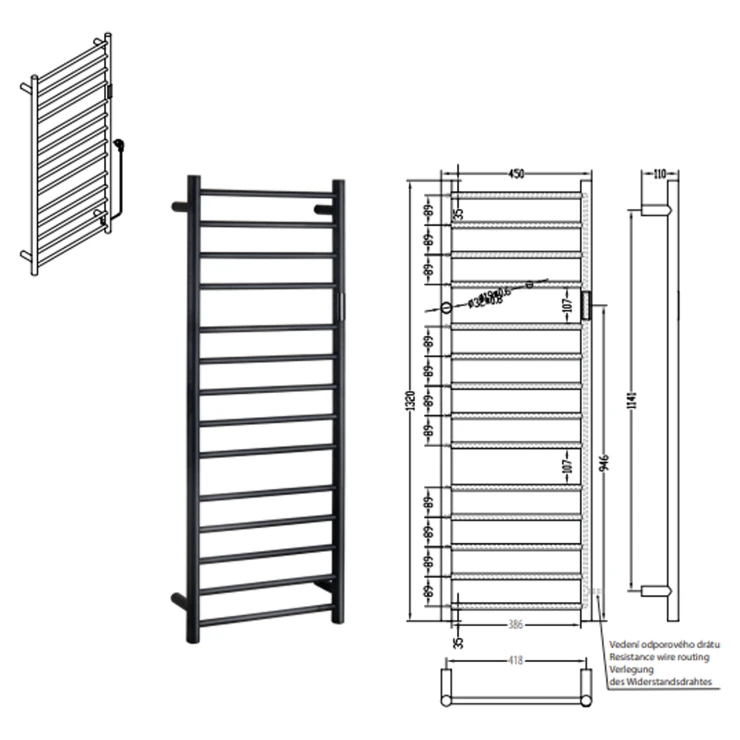 Anslutningstyp: handdukstorken är utrustad med anslutningskabel med stickkontakt för eluttag samt med reducering för fast anslutning till väggens elinstallation.