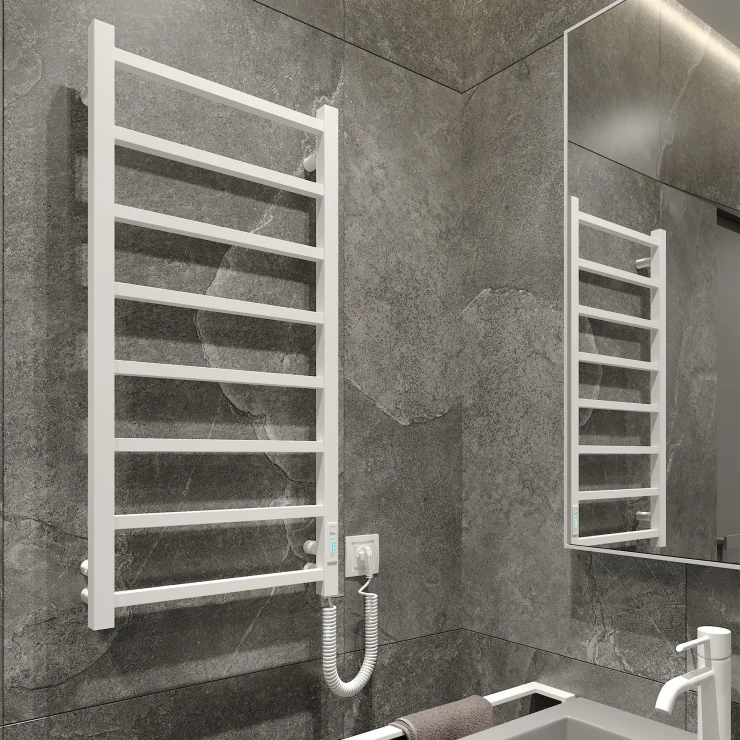 I tråd med globale trends inden for badeværelsesdesign præsenterer vi denne elektriske håndklædetørrer i mat sort udførelse. Et perfekt designvalg for kunder, der værdsætter industrielle farvetoner, minimalistisk æstetik og rene metalformer.