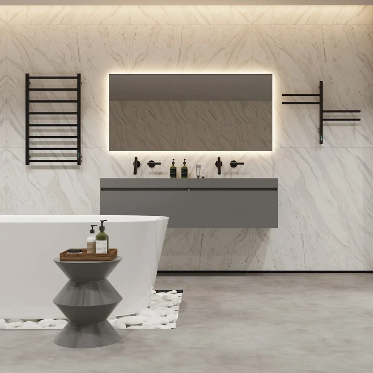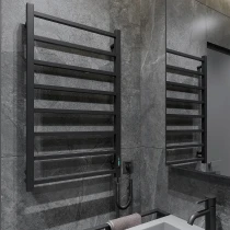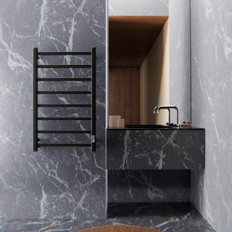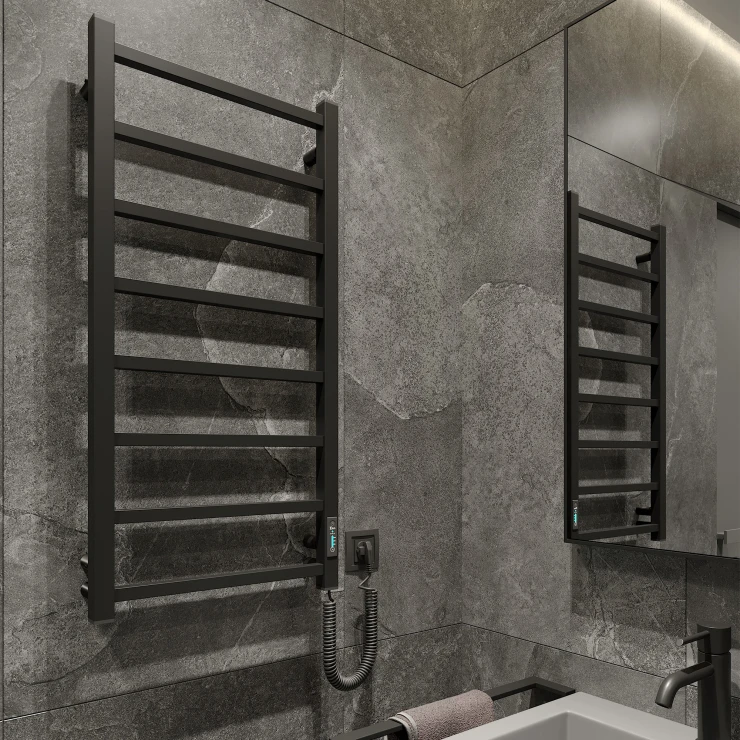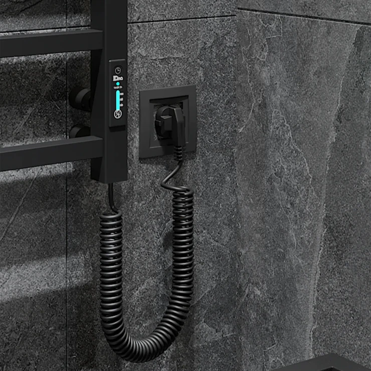 I tråd med globale trends inden for badeværelsesdesign præsenterer vi denne elektriske håndklædetørrer i mat sort udførelse. Et perfekt designvalg for kunder, der værdsætter industrielle farvetoner, minimalistisk æstetik og rene metalformer.