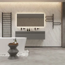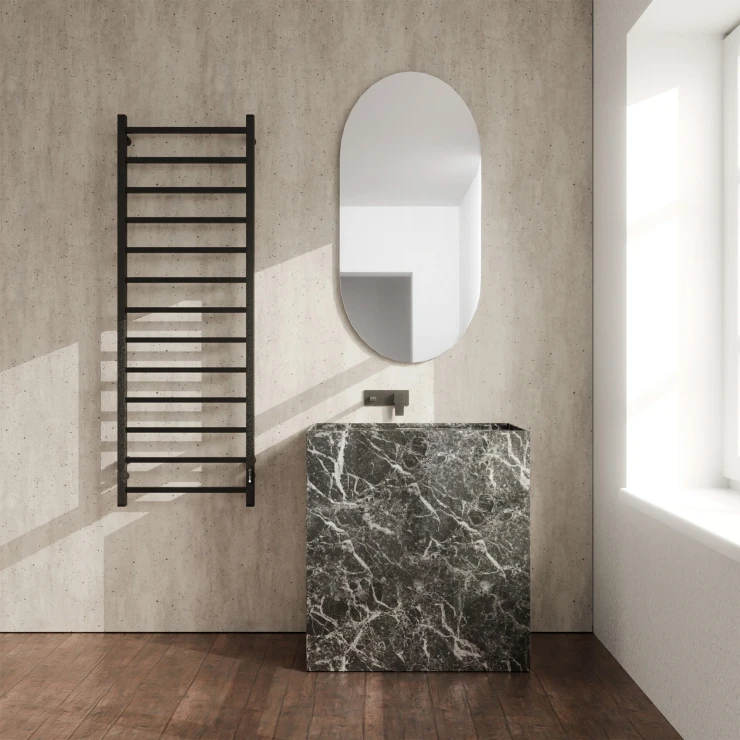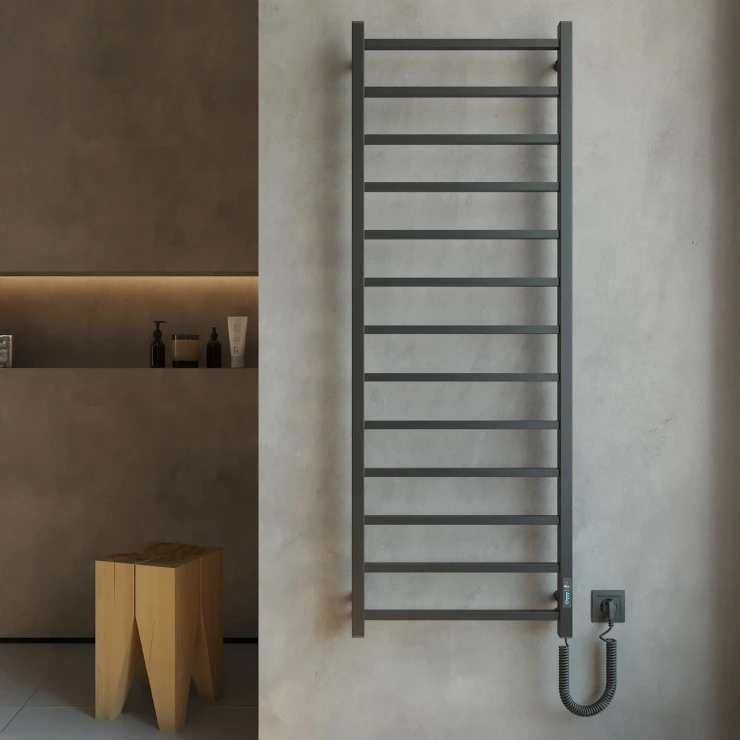 I tråd med globale trends inden for badeværelsesdesign præsenterer vi denne elektriske håndklædetørrer i mat sort udførelse. Et perfekt designvalg for kunder, der værdsætter industrielle farvetoner, minimalistisk æstetik og rene metalformer.